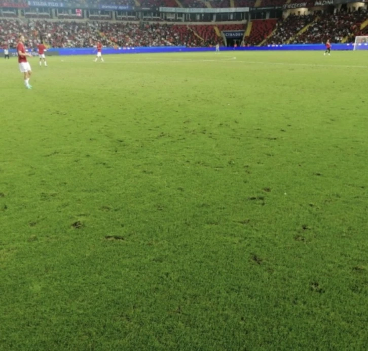 Trendyol Süper Lig’in 2. haftasında Kalyon Stadyumun’nda oynanan Gaziantep FK - Sivasspor karşılaşmasında zeminin adeta tarlaya dönmesi dikkatler kaçmadı.