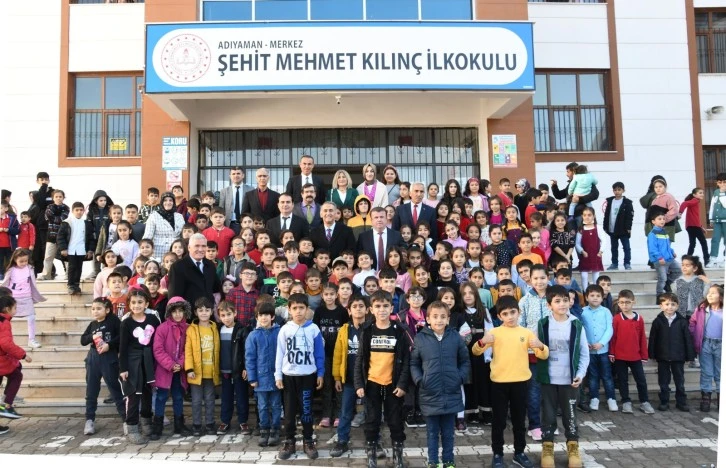 Karne dağıtım törenine Adıyaman Valisi Mahmut Çuhadar, İl Milli Eğitim Müdürü Ramazan Aşçı, öğretmen, öğrenci velileri ve öğrenciler katıldı.