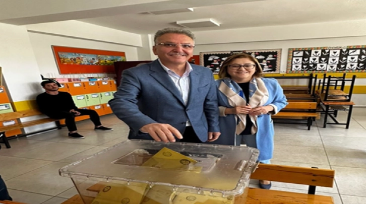 Aslı Alevli İlkokulunda eşi İzzet Şahin ile birlikte oy kullanan Gaziantep Büyükşehir Belediye Başkanı Şahin, Eşimle sandığımıza gidip oyumuzu kullandık. Söz de, karar da artık milletindir.