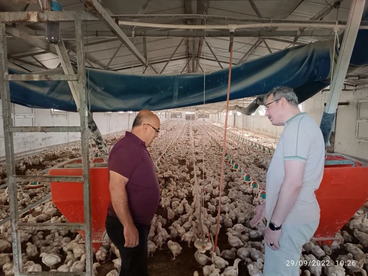 Tarım ve Orman İl Müdürü Mehmet Nuri Kökçüoğlu 2021-2022 başvuru döneminde hibe programına alınan Sabahattin Kırmızı’ya ait 50.000 broyler tavuk kapasiteli işletmede incelemelerde bulundu.