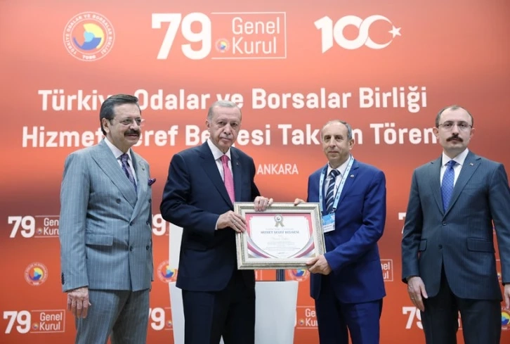 TOBB 79.Genel Kurulunda düzenlenen törende Genel Sekreter Murat Sakar Hizmet Şeref Belgesini Cumhurbaşkanı Recep Tayyip Erdoğan'dan aldı.