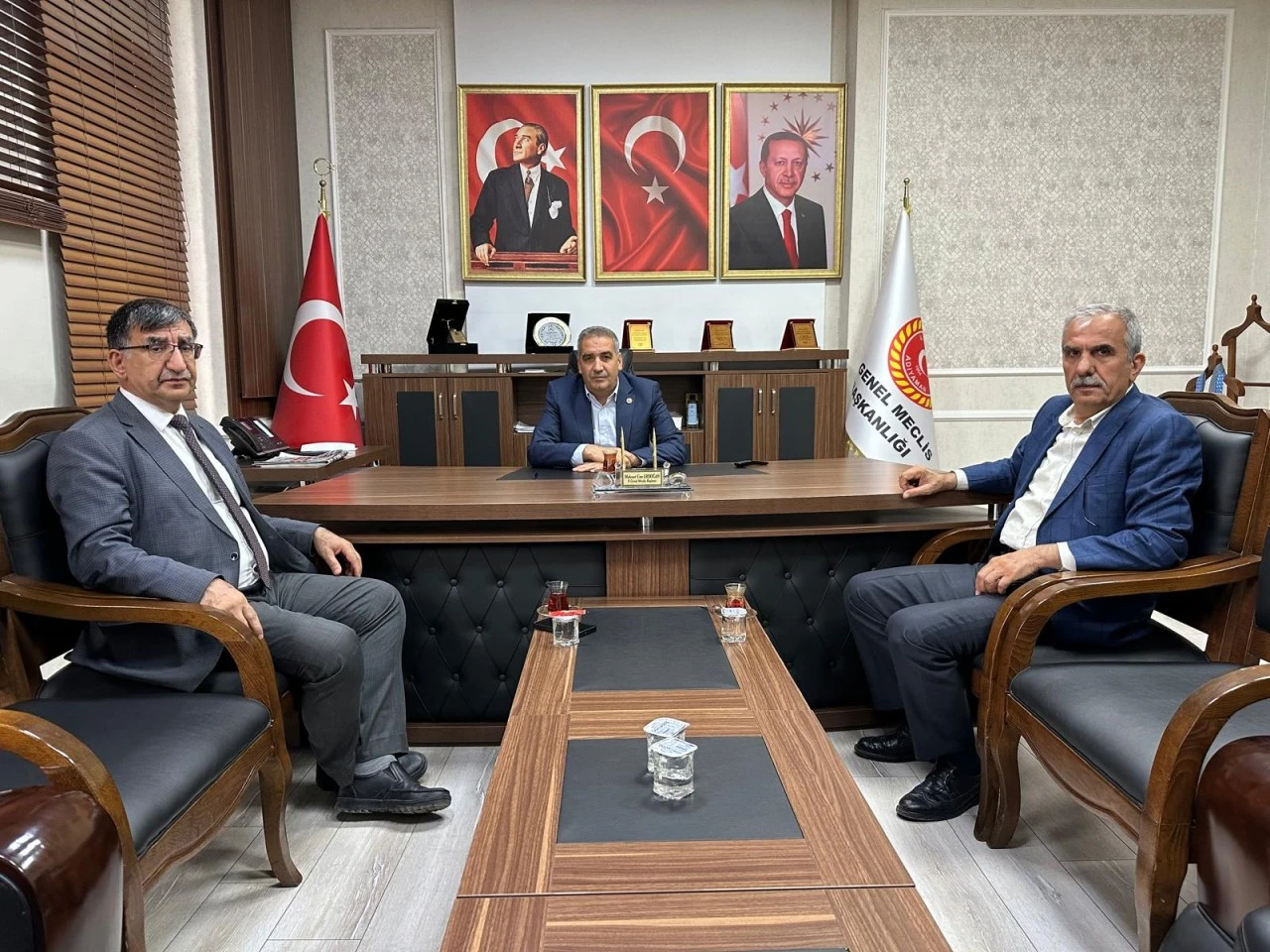 Halk Sağlığı Hizmetleri Başkanı Dr.Hacı Mustafa Kutlu ve Sıtma Savaşı Birim Sorumlusu Mehmet Acar, Adıyaman İl Genel Meclis Başkanı Mehmet Can Erdoğan ile bir araya gelerek; kırsal alanlara yönelik yürütülmekte olan kara sinek ve sivri sinek ile mücadele çalışmalarını masaya yatırdılar.