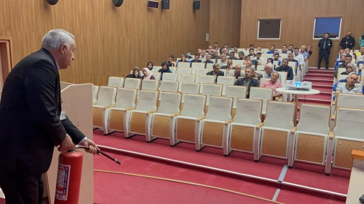 Konferans Salonunda personellere yönelik düzenlenen programda Eğitim Hemşire Filiz Dişkaya, Sivil Savunma Uzmanı Nazif Akgün, Psikolog Muhammed Nurullah Demir ve İş Güvenliği Uzmanı Neşe Erdoğan tarafından personellere temel afet, yangın söndürme, iletişim ve ilk yardım konuları hakkında eğitim verildi.