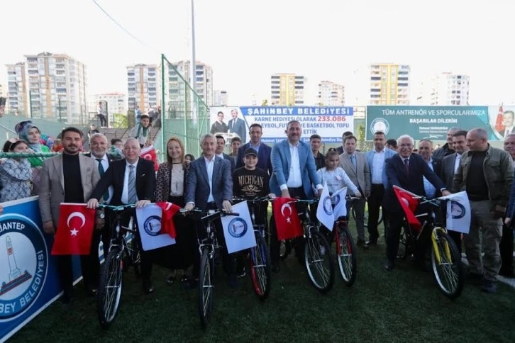 Şahinbey Belediyesi Akkent Spor Köyü’nde düzenlediği törenle öğrencilere bisiklet hediye etmeye devam ediyor.