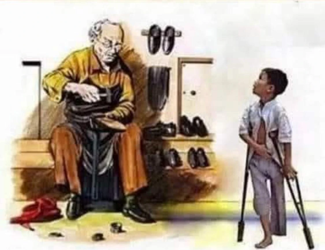 Ayakkabıcı, yeni getirdiği malları vitrine yerleştirirken, sokaktaki bir çocuk onu seyretmekteydi. Okullar kapanmak üzere olduğundan, spor ayakkabılara rağbet fazlaydı. Gerçi mallar lüks sayılmazdı ama, küçük bir dükkân için yeterliydi. Onların en güzelini ön tarafa koyunca, çocuk vitrine doğru biraz daha yaklaştı. Fakat bir koltuk değneği kullanmaktaydı. Hem de güçlükle...