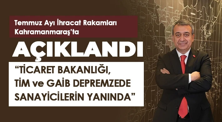 Temmuz ayı ihracat rakamlarının açıklandığı Kahramanmaraş’ın ihracat verilerini de açıklayan Kileci “Kahramanmaraş’ın ihracatı 6 Şubat depremlerinden bir hayli etkilenmiş durumda. Elimizden gelen gayreti göstersek de toparlanma illaki zaman alacaktır. Temmuz ayında Kahramanmaraş’ın ihracatı bir önceki yılın aynı ayına göre %29 azalarak 68 Milyon $’a geriledi. Temmuz ayında Kahramanmaraş’tan 86 ülkeye ihracat yapılırken ihracatta ilk 5 ülke sırasıyla İtalya, Mısır, Almanya, Bangladeş ve Bulgaristan oldu. 7 aylık süreçte ise Kahramanmaraş’ın ihracatı %35 gerileyerek 563 Milyon $ oldu.