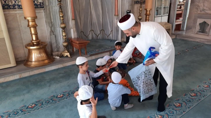 Ziyaret sonrası öğrencilere çeşitli ikramlar yapılırken, öğrencilere caminin mihrap, minber ve vaaz kürsüsü bölümleri de tanıtıldı.