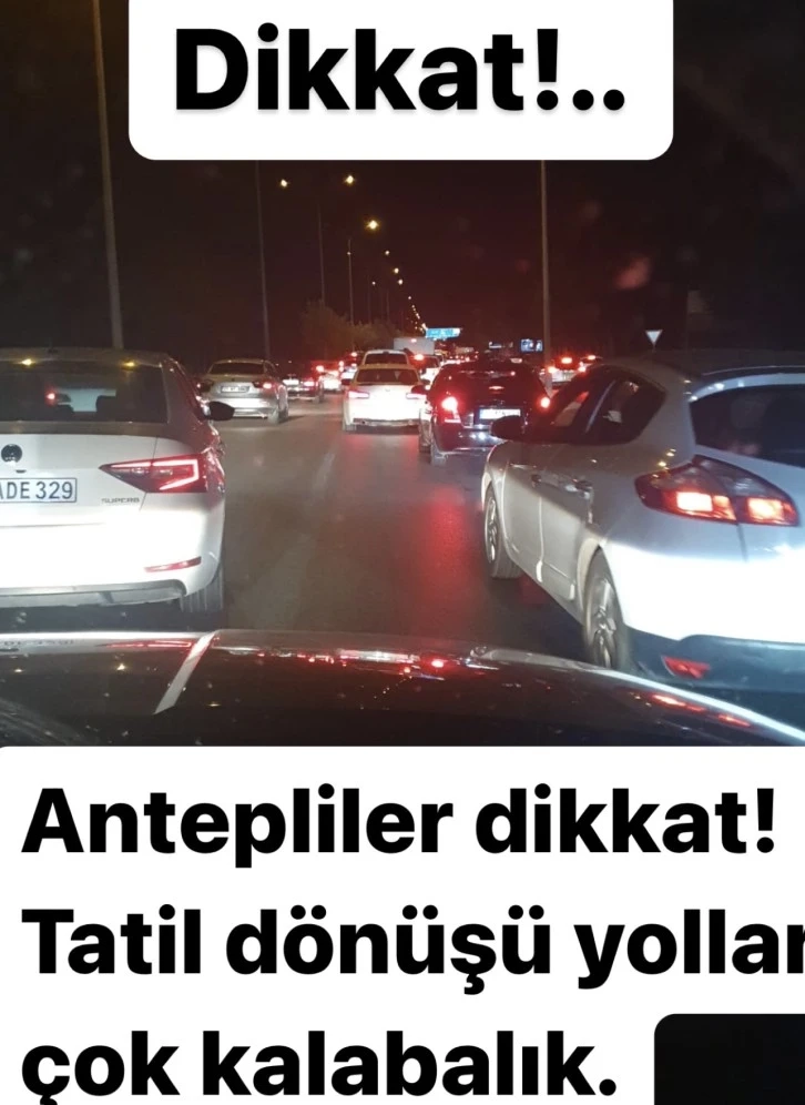 9 Günlük Bayram tatilini fırsat bilerek şehir dışına çıkan Gazianteplilerin geri dönmeye başlamasıyla yollardaki yoğunluk sebebiyle sürücülerin dikkatli olması konusunda uyarılar yapıldı. Yollardaki yoğunluğun Pazar günü daha