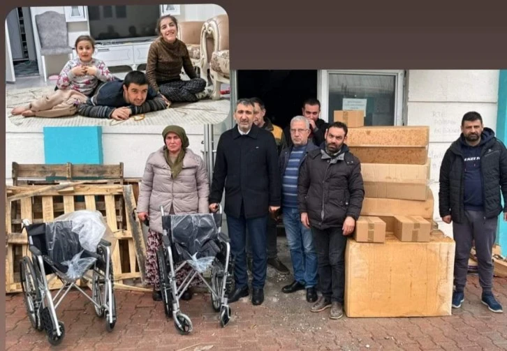 Konuyla ilgili bilgi veren Ramazan Oruç; "Söz konusu aileye tekerlekli, sandalye, yatak, yorgan, yastık, mutfak malzemeleri, gıda, hijyen ve diğer ev malzemelerini teslim ettik" dedi.