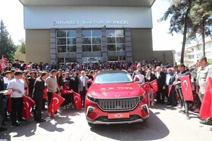 Gaziler Diyar’ından Şehitler Diyarına Porjesi ile ecdatla buluşacak olan öğrencilere Şahinbey Belediye Başkanı Mehmet Tahmazoğlu, Türkiye’nin ilk yerli ve milli otomobili TOGG’u getirerek sürpriz yaptı. Öğrenciler Çanakkale Bilgilendirme toplantısı öncesi TOGG’u yakından inceleyerek fotoğraf çektirdi.