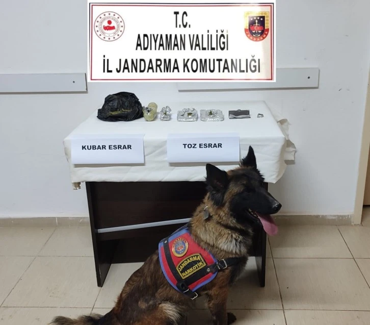 Adıyaman İl Jandarma Komutanlığı Merkez İlçe Jandarma Komutanlığı ekiplerince G.S. isimli şahsın evinde uyuşturucu madde olduğunun tespit edilmesi üzerine şahsa ait ev ve müştemilatta yapılan adli aramada; evin bahçesinde toprağa gömülü şekilde (5) paket preslenmiş şekilde yaklaşık (230) gram toz esrar, sarma kağıdı ve uyuşturucu madde kullanma aparatı ele geçirilmiştir.