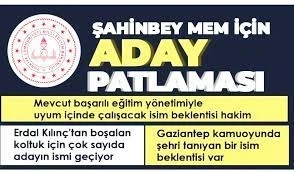 Yeni Şahinbey İlçe Milli Eğitim Müdürlüğü için ismi geçen adaylarının pek çoğunun Gaziantep dışından isimler olduğu belirtilirken, Gaziantep kamuoyu ise kenti bilen bir ismin atanmasını istiyor. Yeni atanacak müdürün kent dışından biri olması halinde alışma sürecinin uzun süreceği ve bu durumun da iş ve işleyişte aksamalara yol açacağı belirtildi.