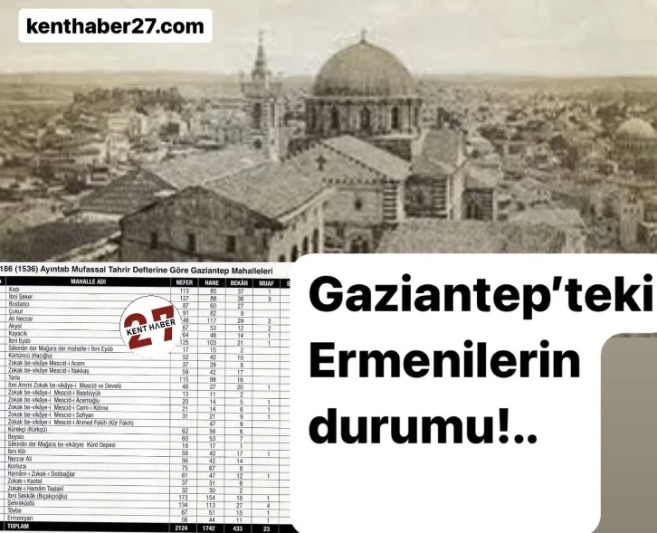 Ermenilerin Gaziantep’teki geçmişi hakkında bilgi kirliliği yaratanlara önemle duyurulur.”