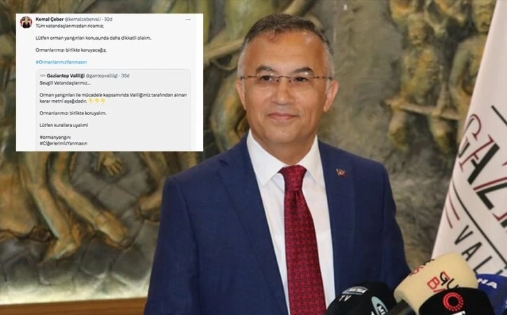Sosyal medya hesabı üzerinden yasakları duyuran Gaziantep Valisi Kemal Çeber, ‘’Tüm vatandaşlarımızdan ricamız; Lütfen orman yangınları konusunda daha dikkatli olalım.