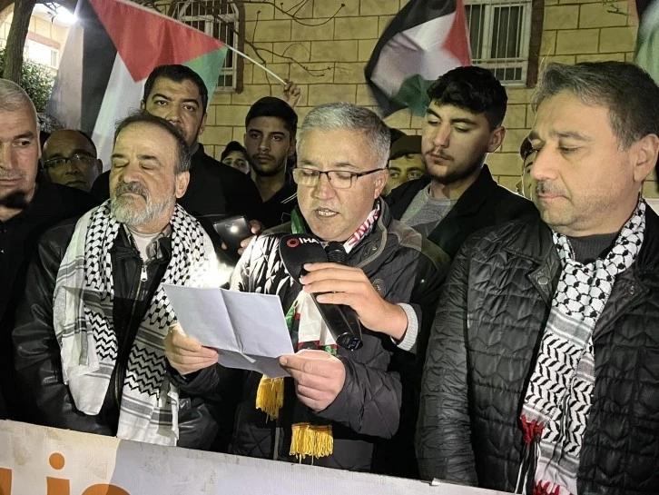 Kilis Sivil Dayanışma Platformu olarak, işgal edilmiş Filistin topraklarında kadın ve çocukları öldürerek var olmaya çalışan terör devleti İsrail’i kınıyor, lanetliyoruz” dedi.