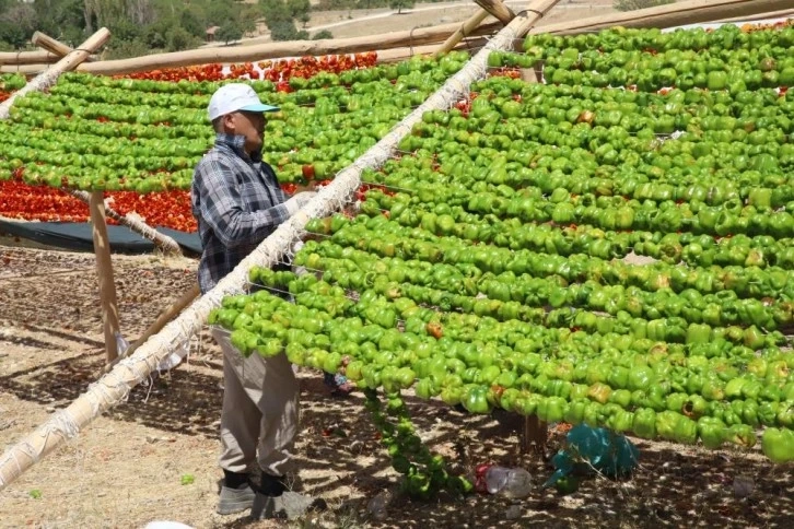 Sıcak havalarla birlikte kurutulmaya başlanan biber ve patlıcan gibi sebzeler kenti yüksek noktalarını kırmızıya bürüdü.